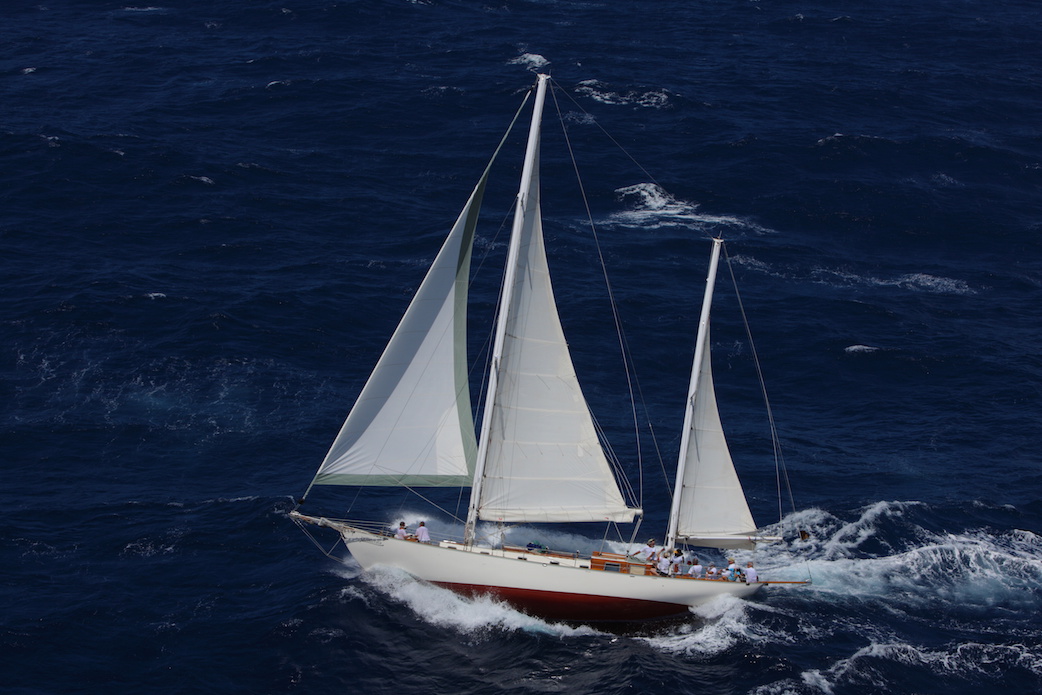 - S/Y Desiderata racing at the Antigua Classic Yacht Regatta.