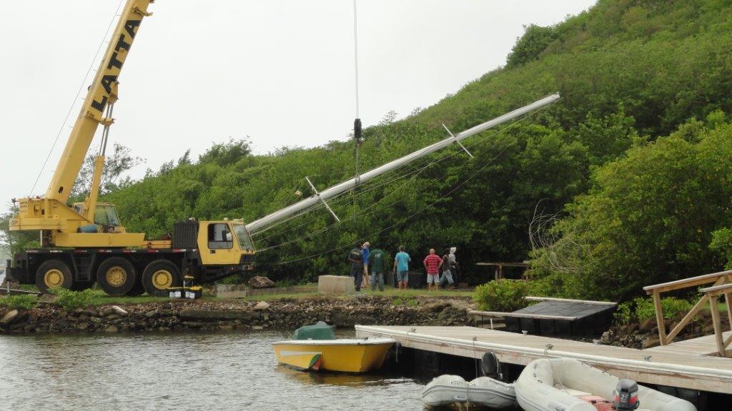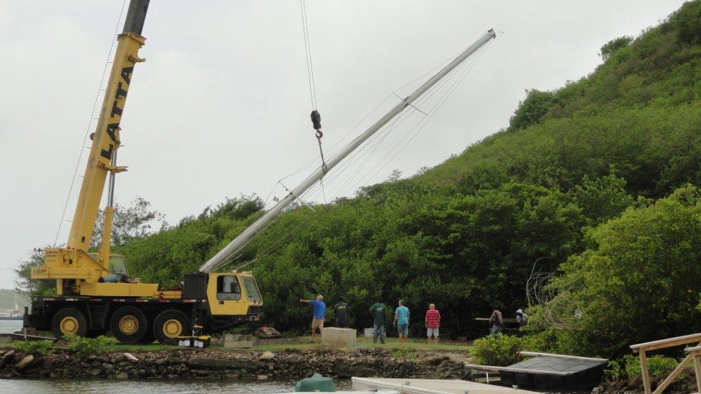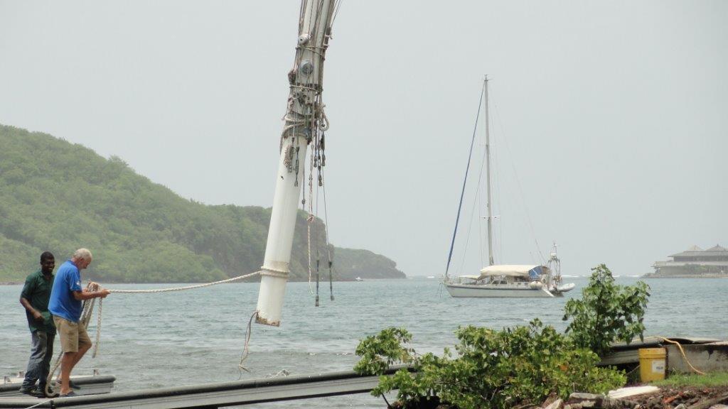 This series of photographs shows the mast being removed for re-rigging in Clarke’s Court Bay Marina, Grenada.